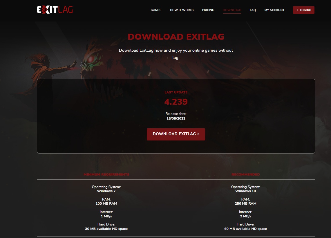 Step 4: Download the Exitlag application and log in to your account.