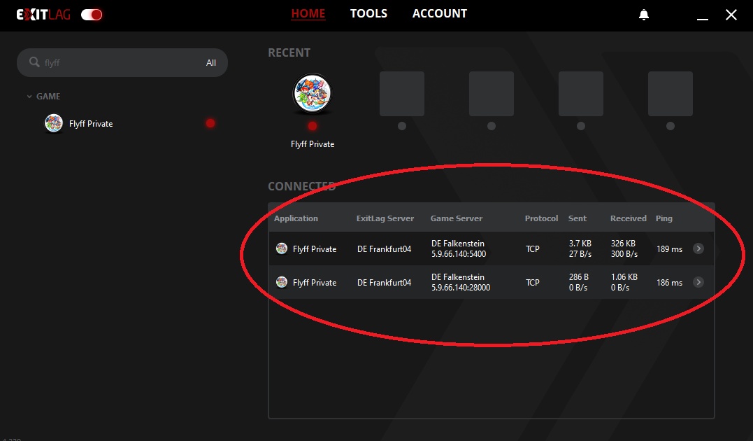Step 8: Log in to your game account and to check if it's working, go to the ExitLag application and look for connected applications.